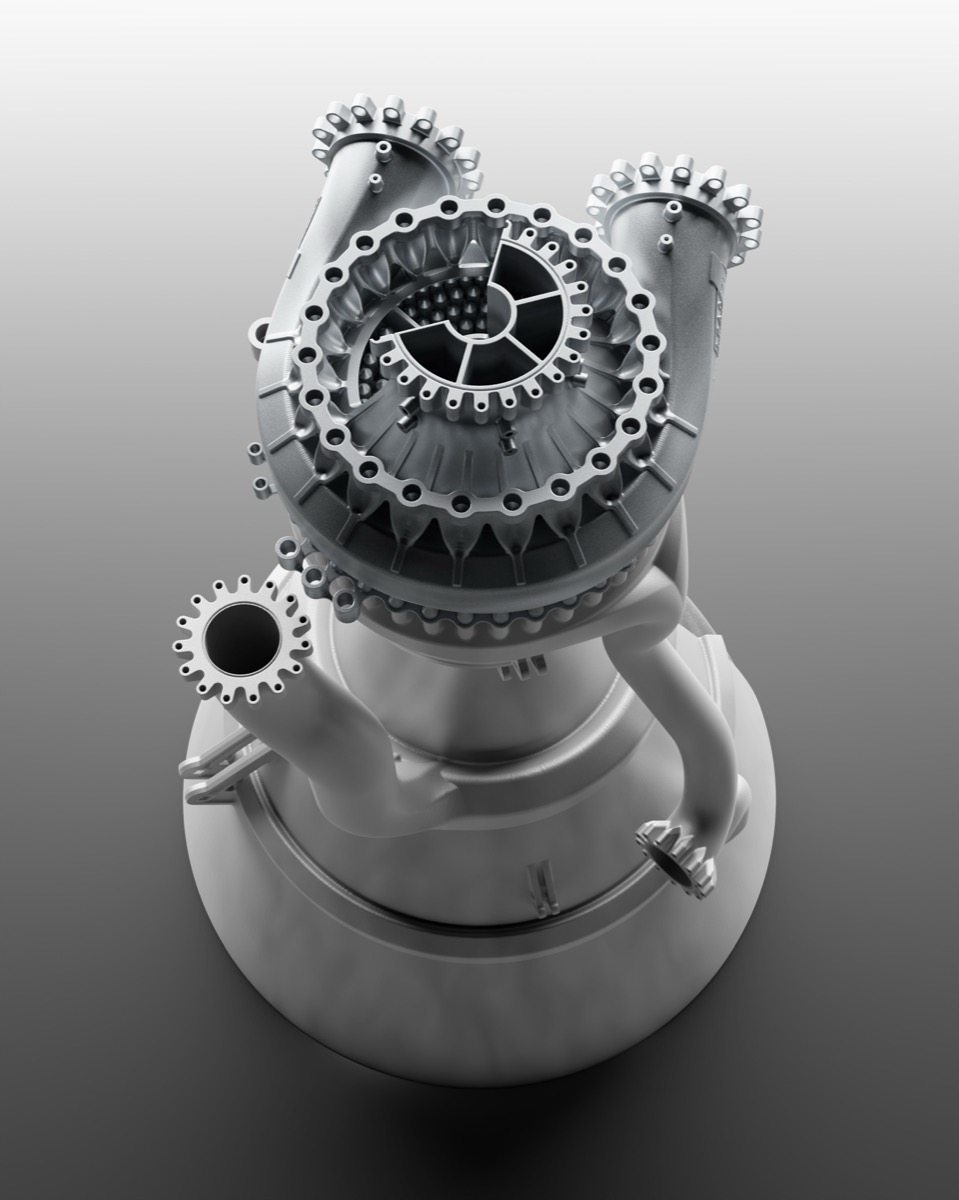 アラブ首長国連邦のドバイを拠点とするAIエンジニアリング企業の LEAP 71 は、Nikon SLM Solutions と連携し、AI計算設計「Noyron」とNikon SLM Solutionsの大型造形機「NXG 600E」を用いて、直径600mm・推力2MN級FFSCロケットエンジン用の噴射器ヘッドを金属3Dプリンターで一体造形した。