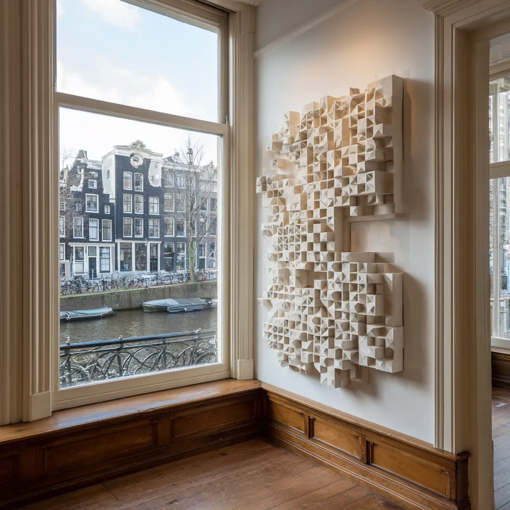 ドイツ・ハイデルベルクの制作スタジオ New Digital Craft(NDC)は、3Dプリンターを活用し、オーダーメイドの吸音壁を「壁掛けアート」として成立させることを目的に、自然由来でリサイクル可能な素材を用いた壁面モジュールを展開している。