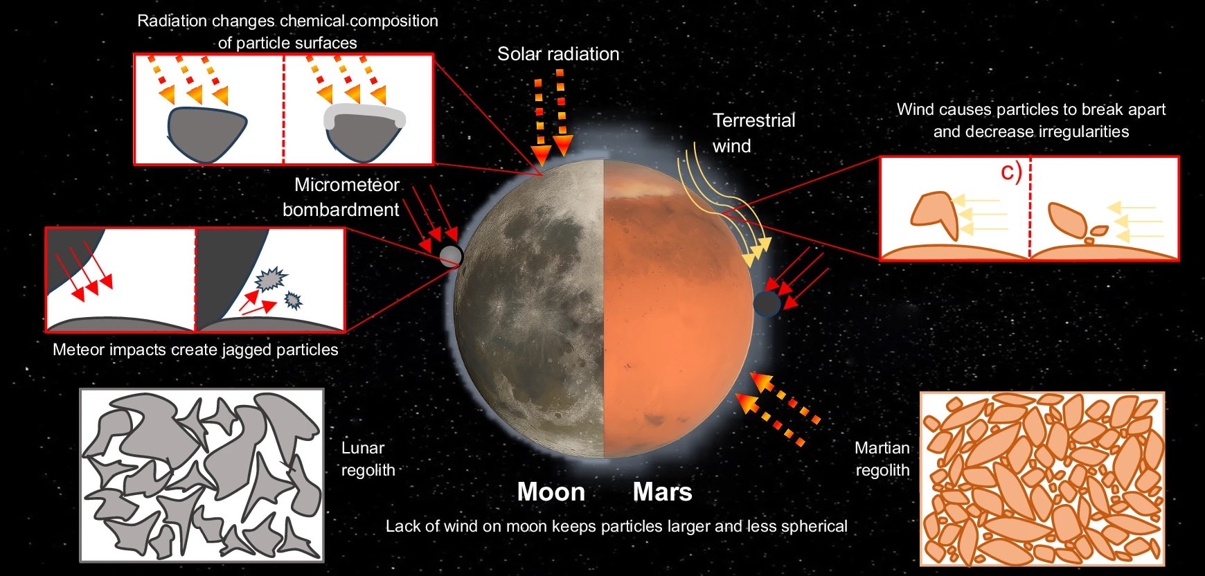 レゴリスの形成に関与する主な環境プロセスの比較