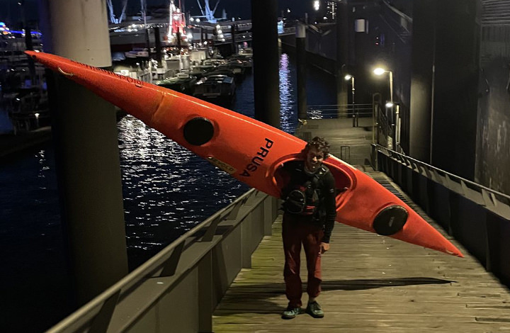 航行開始後は、船底の補強や船首の破損など想定外の問題が発生し、現地での補修を繰り返しながら進むこととなった。過酷な環境と身体的負担により途中で1名が陸上支援へ回る場面もあったが、最終的にカヤックは9日間でハンブルクへ到達した。
