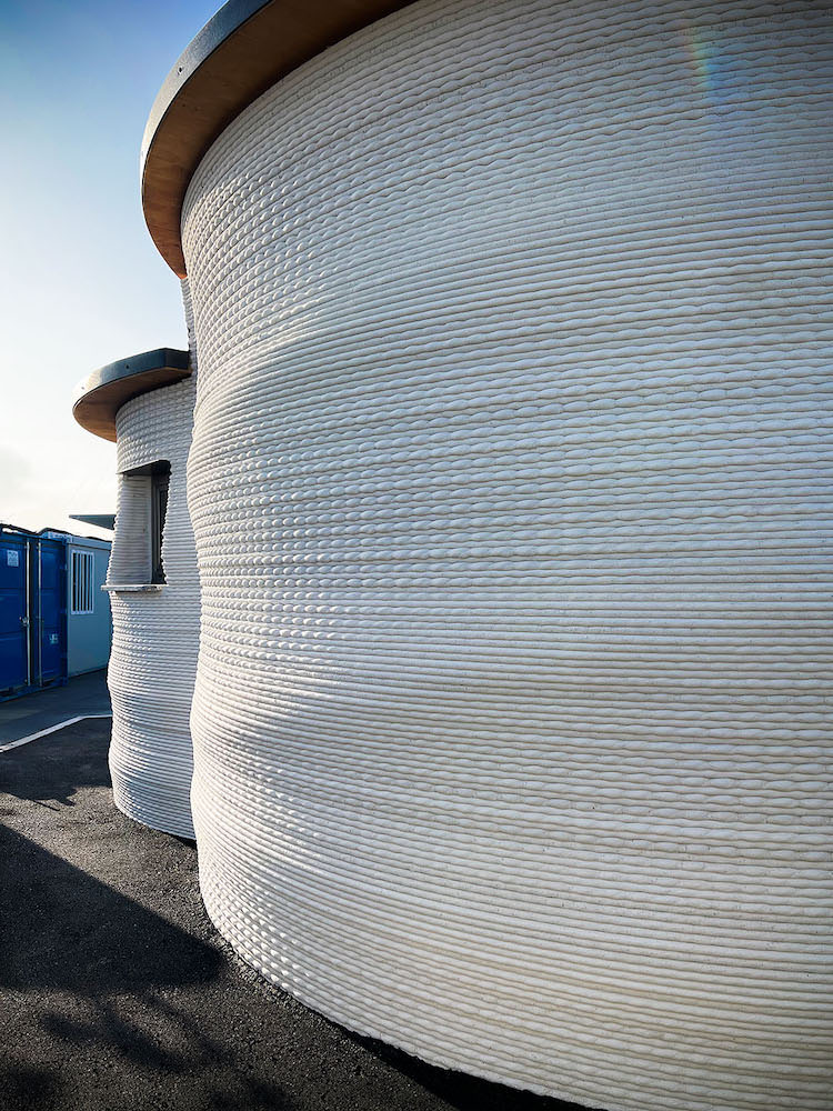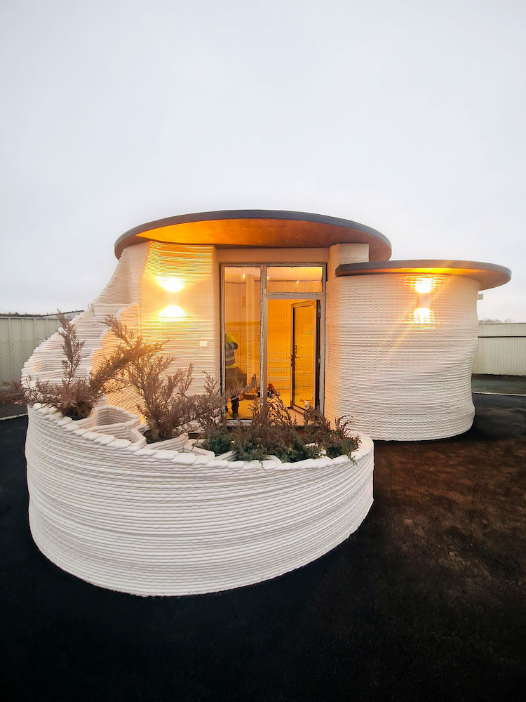 この建物の施工には、イタリアの3Dプリンターメーカー WASP が開発した「Crane WASP」システムが使用されている。この大型3Dプリンターはモジュール式構造を採用しており、最大50㎡以上の建築に対応しながら、現地での組み立て・移設も容易である点が特徴だ。