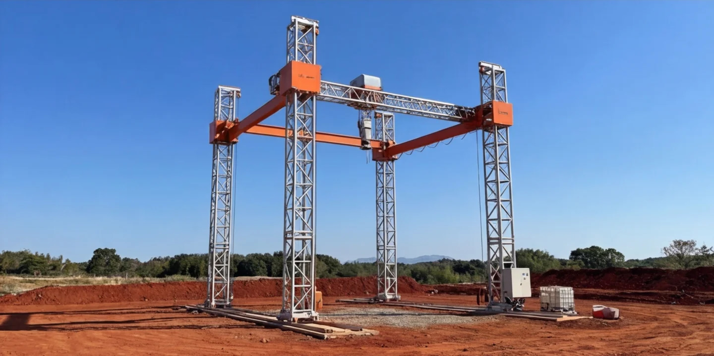 今回のプロジェクトでは、自社開発のガントリー式(門型のフレーム構造の中でプリントを行う方式)3D建築プリンターを使用して、小規模な構造物の施工を実際の建設現場環境で検証する。